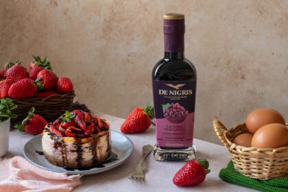 Before serving, remove the mini cheesecakes from the molds and place them on serving plates. Garnish with sliced fresh strawberries and a small sprig of marjoram. Finish with a drizzle of La Saba Vincotto – Cooked Grape Must.