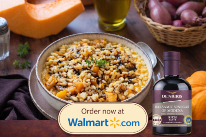 A warm, elegant dish where the earthy flavors of pumpkin blend with the creamy texture of Arborio rice. Finished with a drizzle of Balsamic Vinegar of Modena Platinum Label – Rich Taste for a bold, perfectly balanced touch.